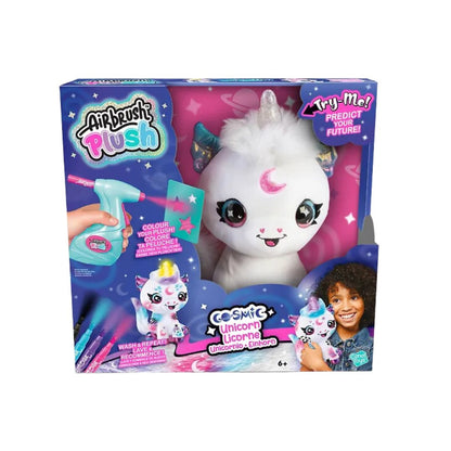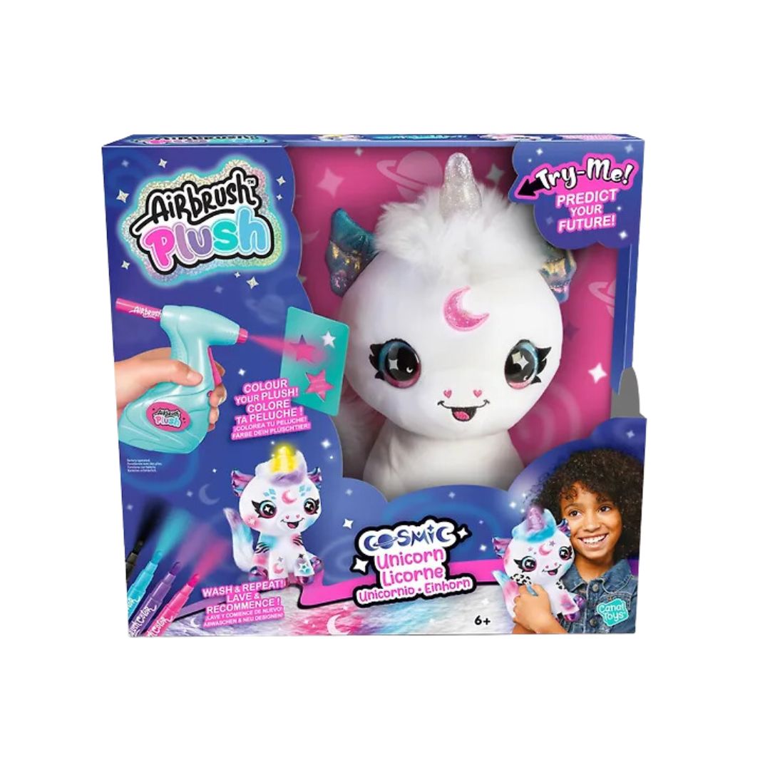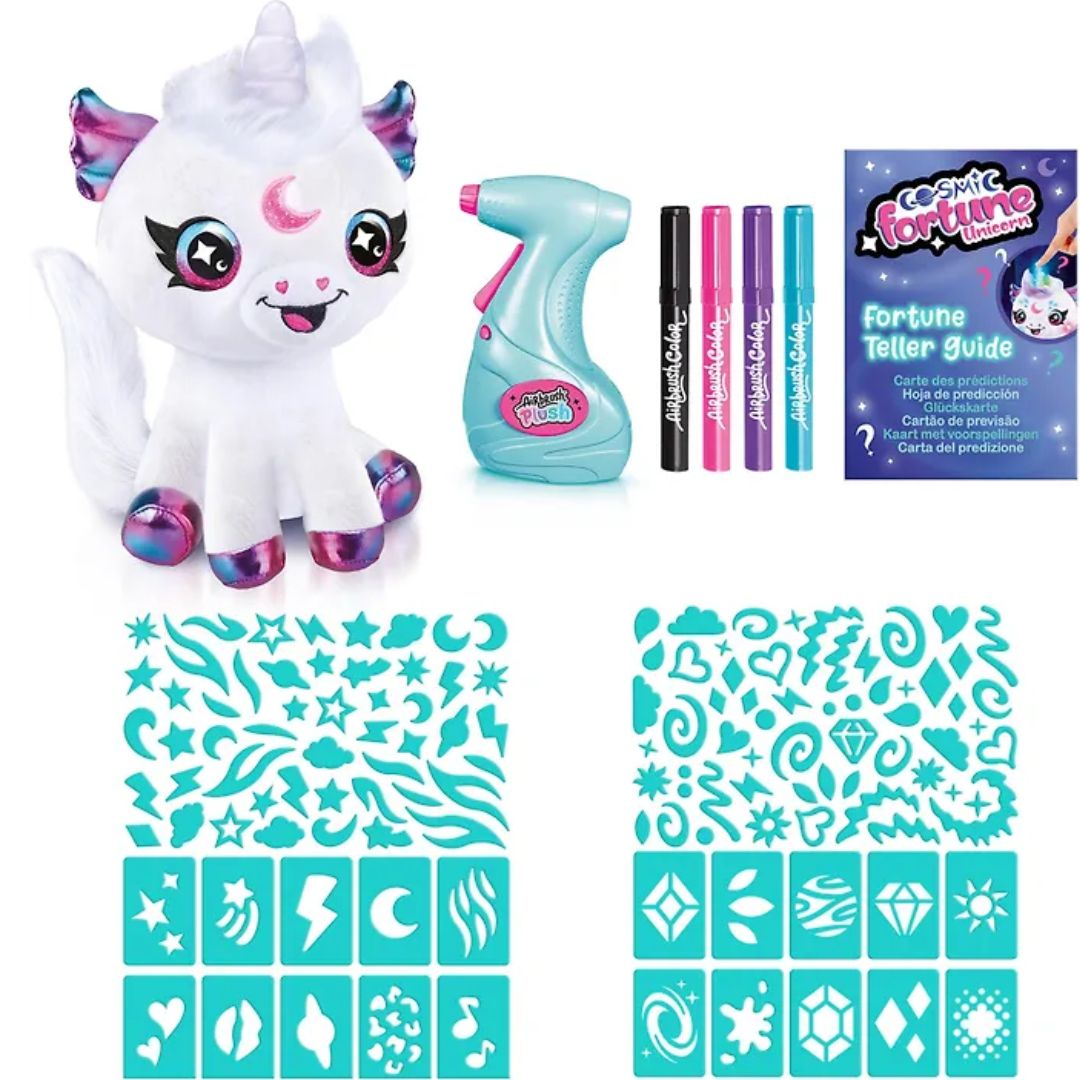 The Canal Toys Airbrush Plush Light-Up Cosmic Unicorn is an interactive toy that allows children to creatively personalize their plush companion. Featuring a battery-powered airbrush and colorful chalk markers, this unicorn can be styled in various ways. The magical horn changes colors in response to questions, adding an element of fun and mystery. With over 100 stencils available, kids can customize their unicorn and easily wash off designs to start anew, fostering endless creativity and imaginative play.