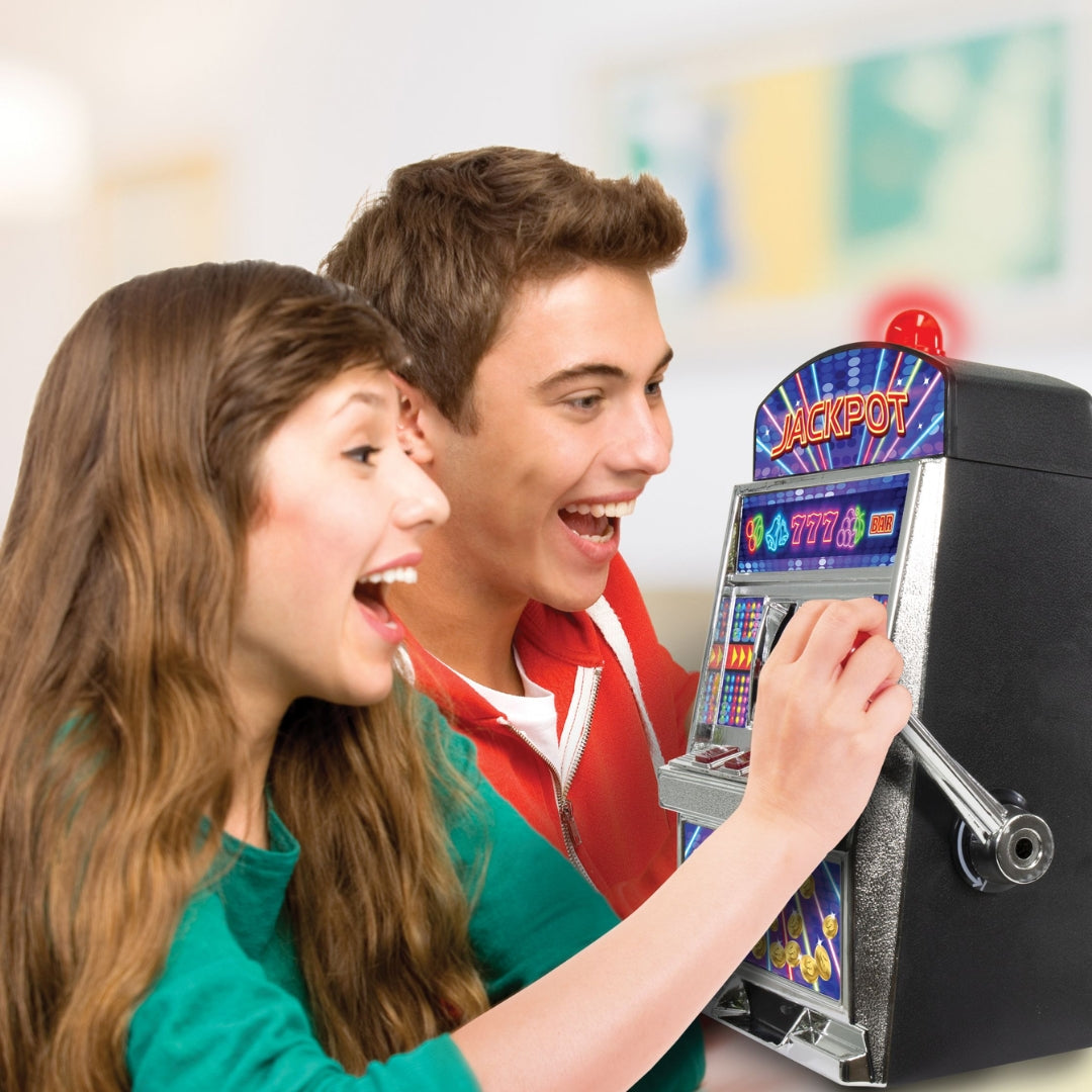 The Ambassador MAM Slot Machine Electronic Arcade Neon Series brings the thrill of a casino to your home. Players can pull the lever and spin the reels in hopes of hitting three lucky 7s in a row.