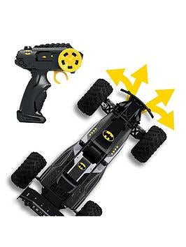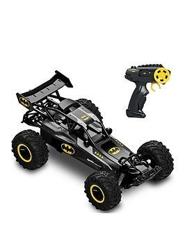 he Batman R/C Dune Racer is an impressive 1:10 scale remote-controlled vehicle designed for high-speed crime-fighting adventures. It features full control radio control, working off-road suspension, and massive Real Rubber tires, allowing it to reach speeds of up to 20 km/h. This all-terrain buggy is suitable for children aged 3 and above and includes a rechargeable battery and handset. With its striking dimensions and capabilities, it offers an action-packed and exciting play experience for young Batman fans.