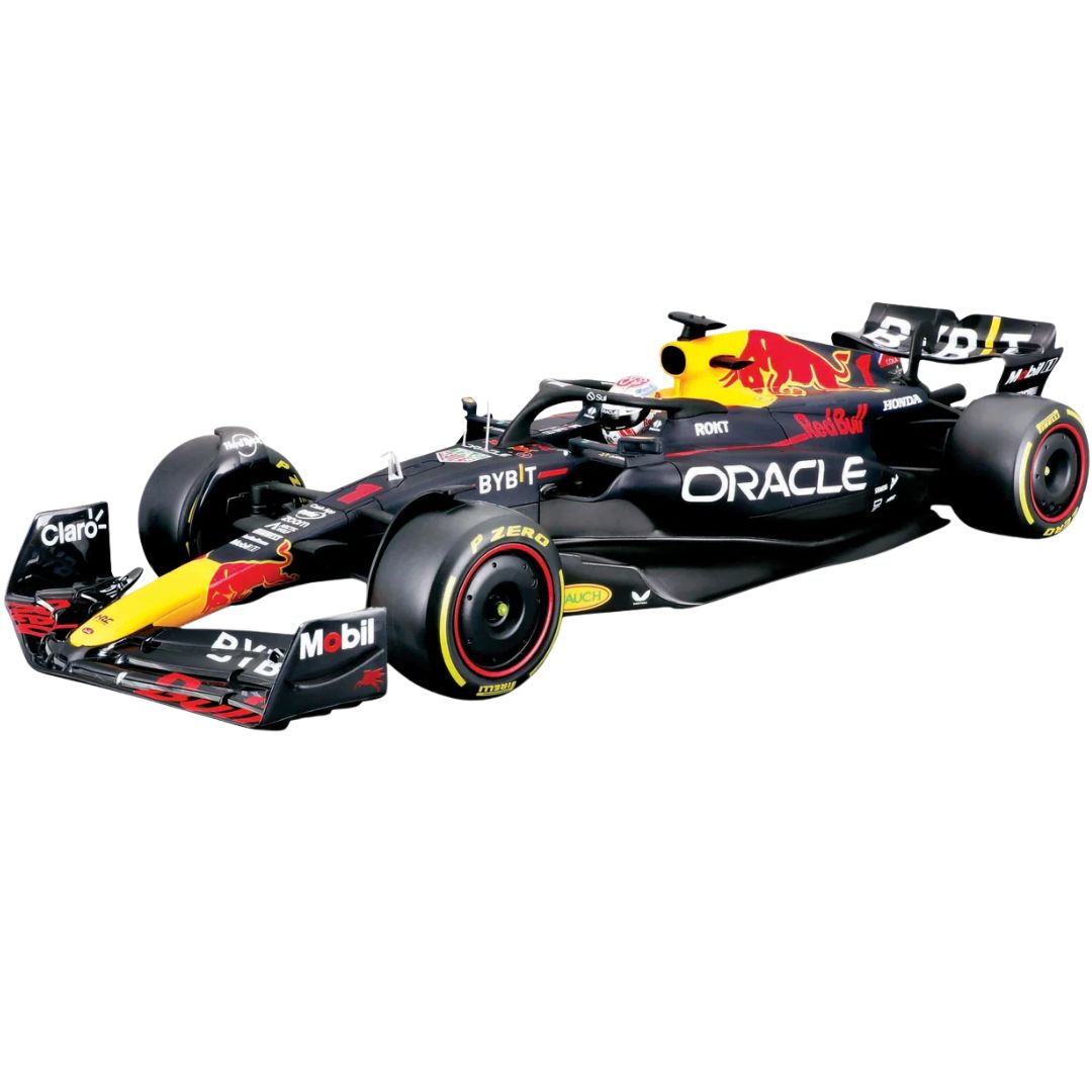 The Burago 1/18 Red Bull F1 RB19 2023 (#1 M. Verstappen) is a highly detailed die-cast model of the Red Bull Racing Formula 1 car from the 2023 season, perfect for collectors and racing enthusiasts.