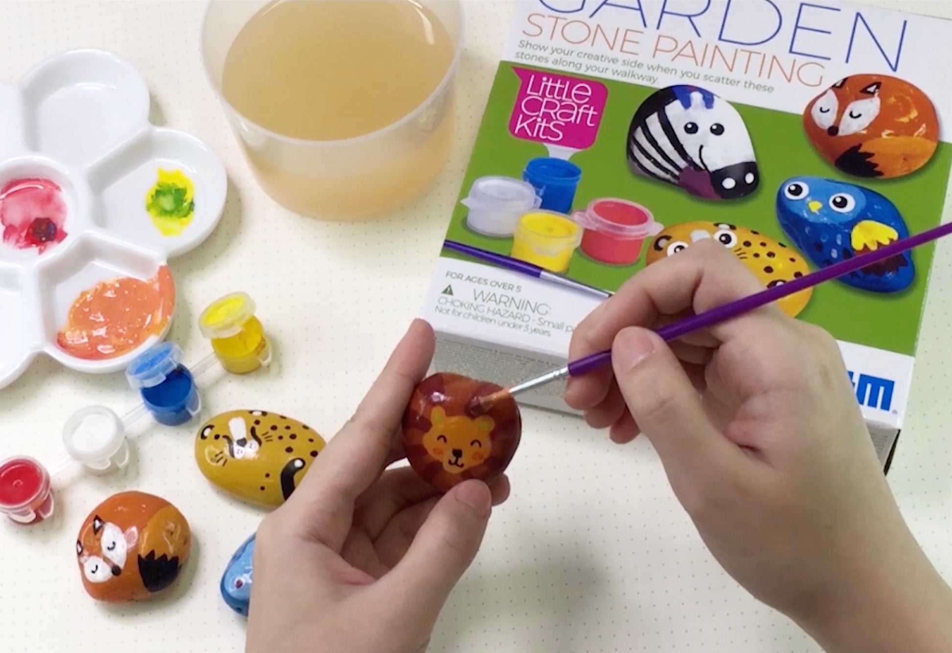 Transform a simple stone into a work of art! Showcase your creative side with these decorated pebbles. It's addictive! Set of 4 stones. Recommended age: 5 years and up. Dimensions: 17 x 17 x 5 cm.