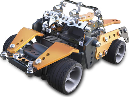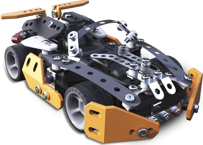 The Remote Control Speedster is a buildable car by Meccano (formerly Erector) that comes with a remote control. This 9.5" long race car can be driven using the included remote control, providing an exciting experience on the open road.