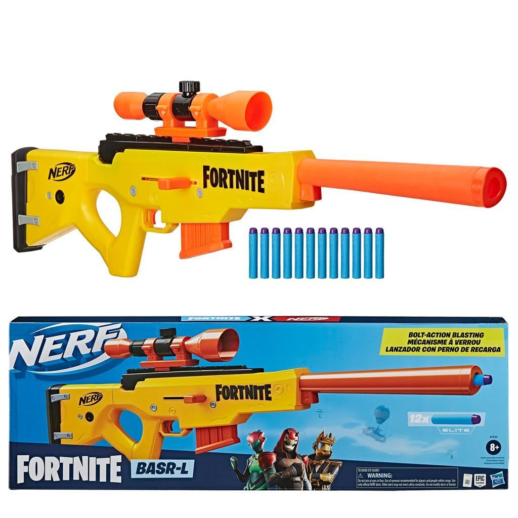 A blaster straight out of the Fortnite gaming world. The Bolt-action, Nerf Blaster boasts a six-dart clip and includes 12 foam darts. Its design is reminiscent of the popular video game. Aim accurately with the detachable scope, aligning cross-hairs for the perfect shot every time. To fire, load the darts, prime the blaster by moving the bolt backward and forwards, and press the trigger. Repeat to fire another dart. The darts, made from official Nerf foam, meet stringent performance and quality tests. Get ready for action-packed adventures. No batteries required. Safety note: Eyewear recommended but not included.