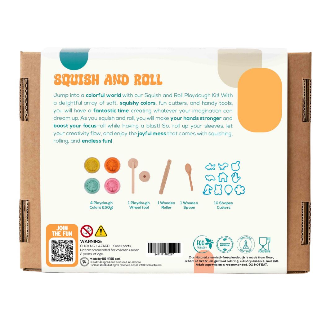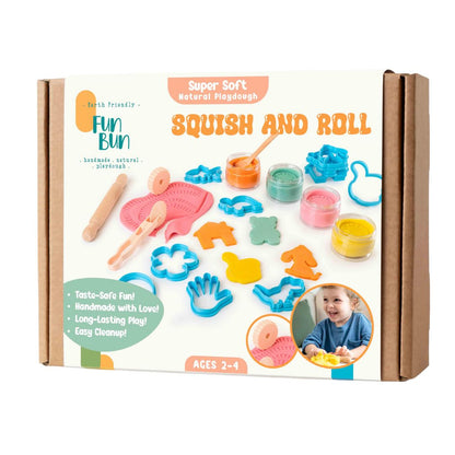 The Funbun Squish & Roll Playdough Kit invites children aged 2 to 4 to dive into a vibrant and playful experience. This kit features a delightful assortment of soft, colorful playdough, fun cutters, and handy tools designed to inspire creativity and enhance motor skills. As kids squish and roll, they not only enjoy themselves but also build strength and focus through engaging play.