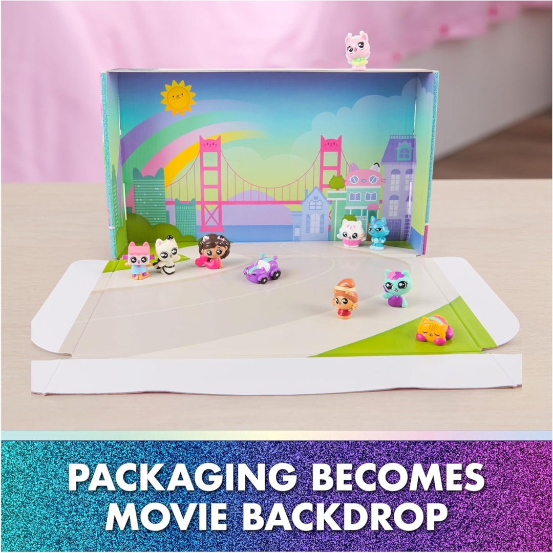 Gabby Movie Magic is a 15-piece collectible set that includes 12 mini figures under 2 inches tall, along with 3 translucent glitter display bases.It features fan-favorite Gabby’s Dollhouse characters such as Mermaid Gabby, MerCat, Pandy Paws, Chumsley, Kitty Fairy, Cakey Cat, DJ Catnip, Baby Box Cat, and more.