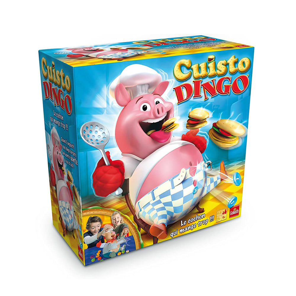 Cuisto Dingo is the funny new friend of the children. Each participant must throw the dice and put hamburgers in the mouth of our greedy friend: we then see his belly swell, inflate and inflate... Be careful not to be the player who causes the explosion of the big greedy! 2 to 6 players Minimum age: 4 years and over Play time: 15 minutes