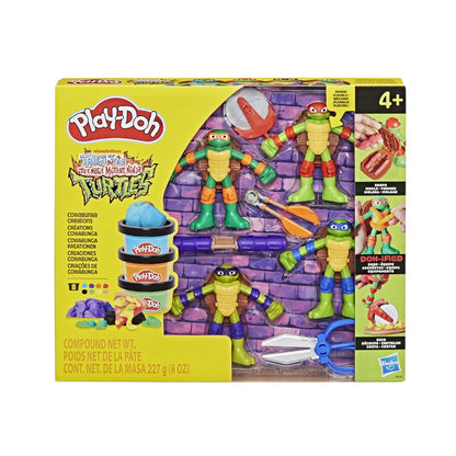 The Hasbro Play-Doh - PD Cowabunga Creations set brings together the beloved Teenage Mutant Ninja Turtles for imaginative adventures. This collection features action figures of Raphael, Donatello, Michelangelo, and Leonardo, each equipped with squishy modeling compound and tools to inspire creativity. This TMNT playset is an excellent gift for children aged 4 and up.