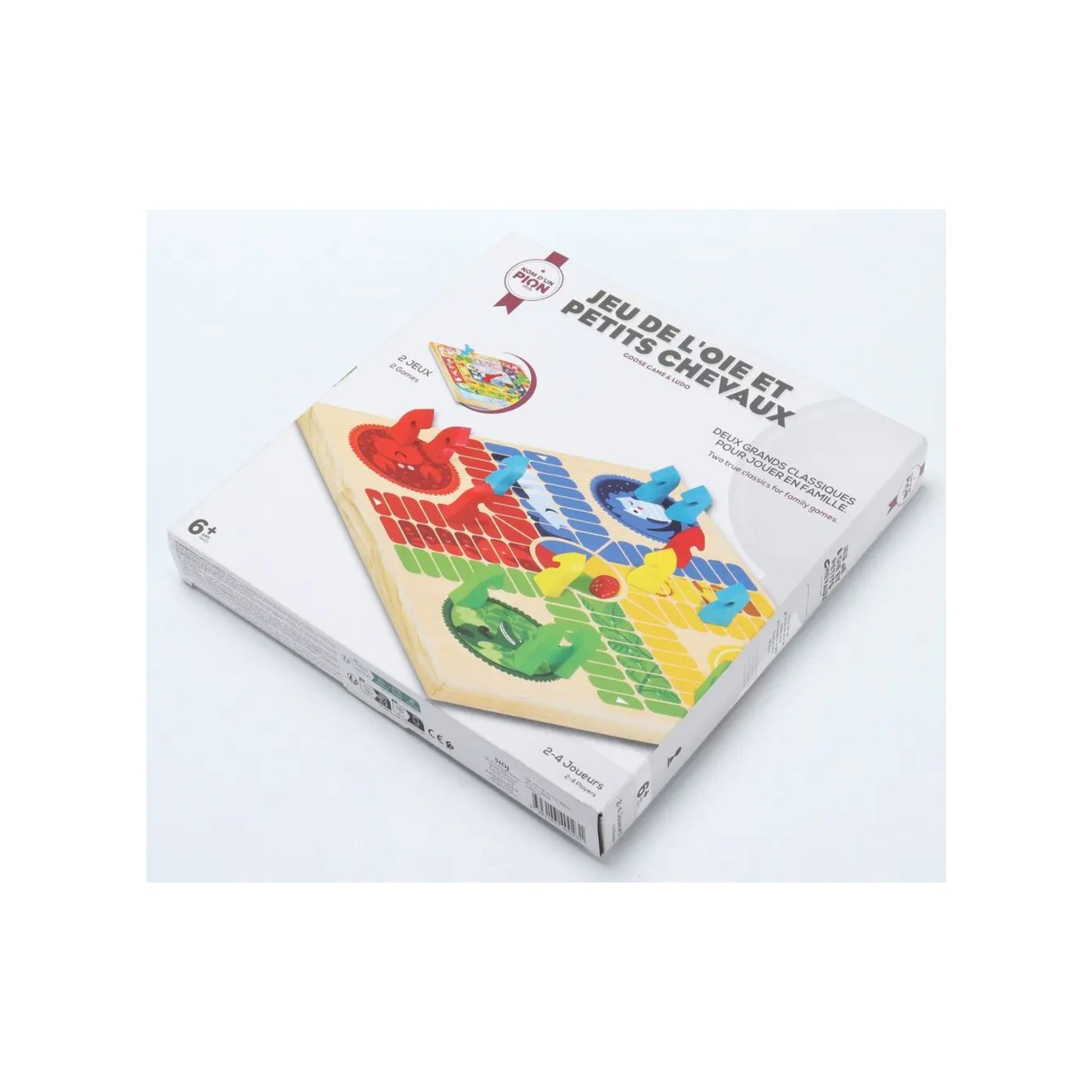 Goose and Ludo wooden board game is a timeless double sided board game set that brings together two beloved classics in one elegant design. Perfect for family game nights, this set allows children to discover their first board games while adults enjoy rediscovering a favorite from childhood.