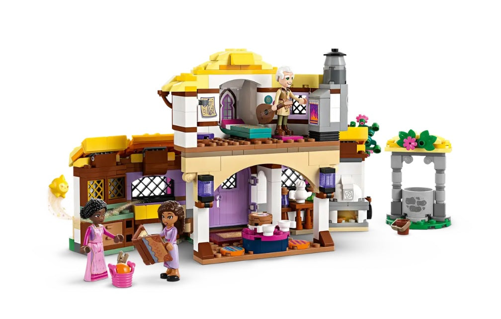 • Unique Cottage and Characters: The set includes a 2-level, round, opening cottage from Walt Disney Animation Studios' upcoming film, Wish, with a wishing well, kitchen, bedroom, and a cast of characters including Asha, her mum Sakina, her granddad Sabino, and Star.