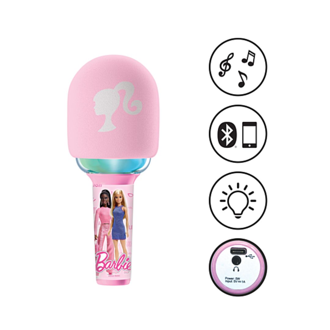 The Lexibook Karaoke Microphone Bluetooth/Wireless Barbie is designed to enhance your singing experience with exciting sound and light effects.