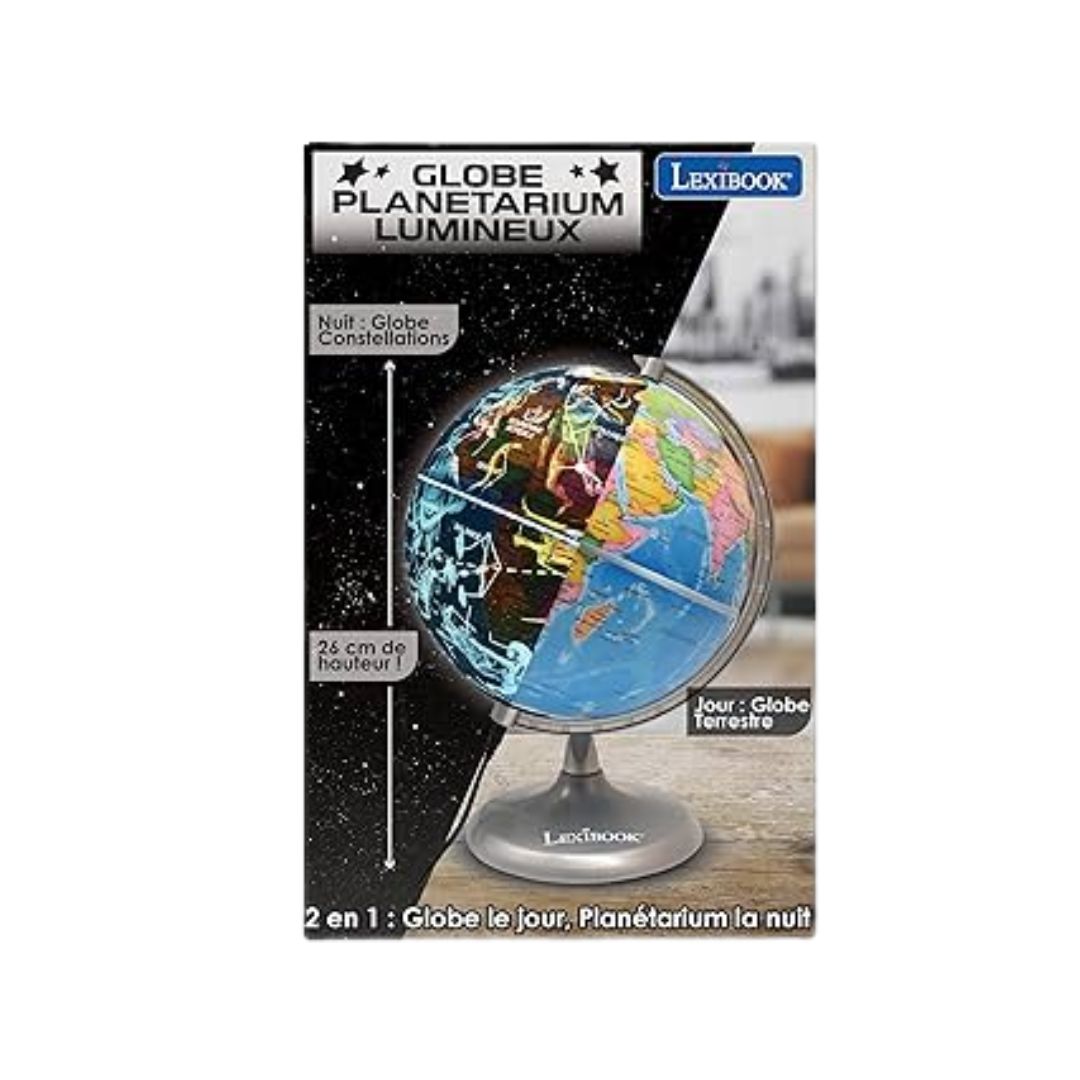 The Lexibook Luminous Globe Planetarium is a 2-in-1 educational globe that features a terrestrial view by day and a constellation map by night.