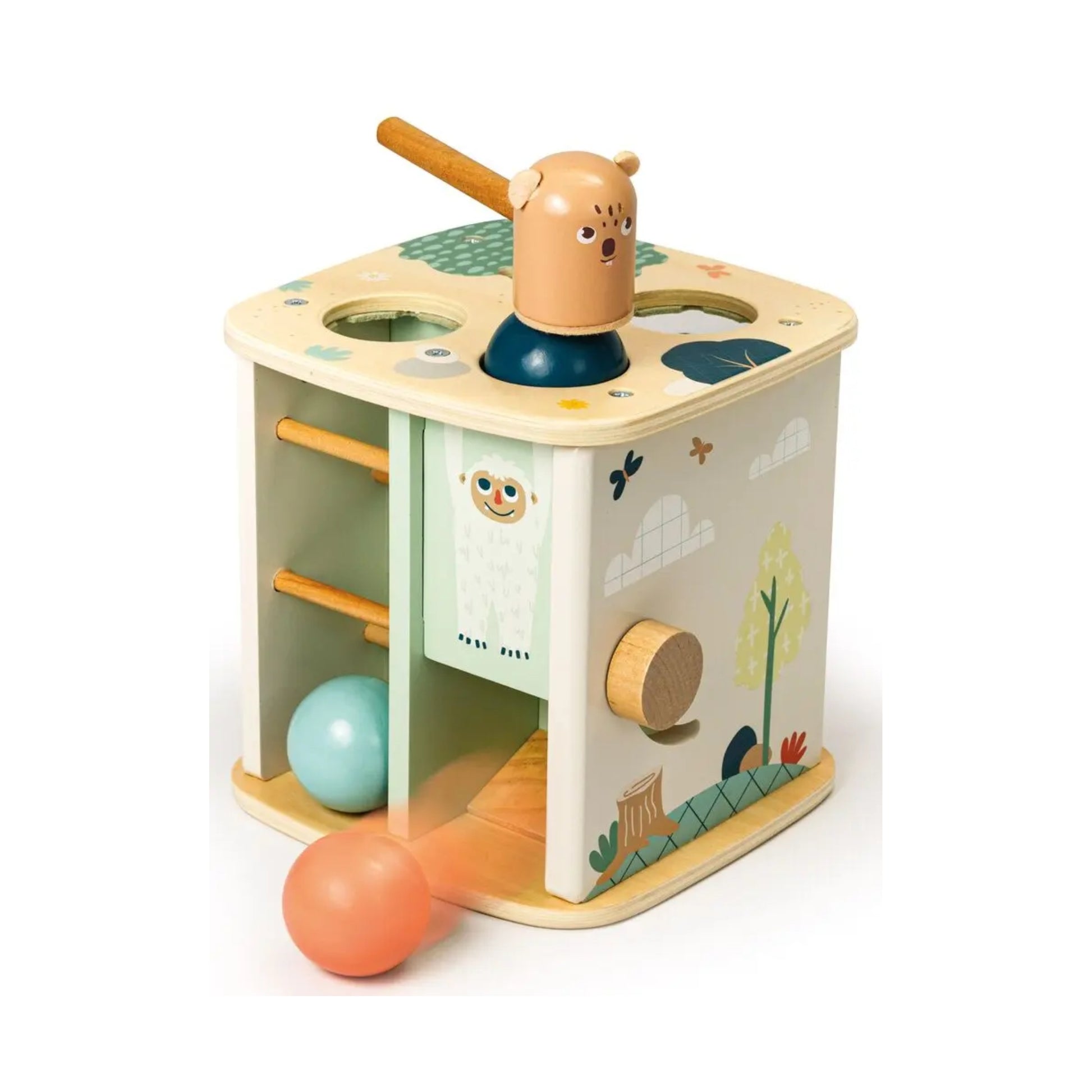 Send the balls rolling downhill with the help of the marmot. This wooden ball run toy is designed to encourage hands-on discovery, problem solving, and imaginative play. Children interact freely with the marmot to set the wooden balls in motion, learning cause and effect at their own pace.