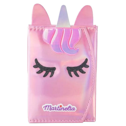 Martinelia Little Unicorn Travel Wallet, a magical companion designed for children aged 3 years and above. This delightful accessory features an adorable unicorn design with a sparkly mane and tail, adding whimsical charm to your child's adventures. Crafted from durable and lightweight material, it offers easy portability and peace of mind with its secure zippered closure. With multiple compartments for organized storage, including eyeshadows, blushes, glitter creams, lip glosses, and applicators, it's perfect for on-the-go fun. However, caution is advised as it contains small parts, making it unsuitable for children under 3 months.