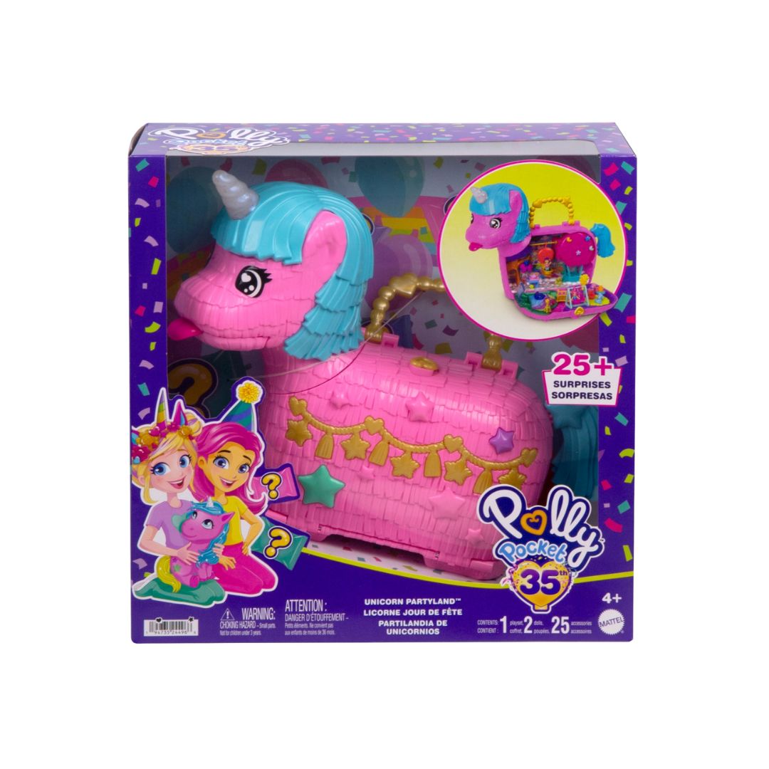 The Mattel Polly Pocket Unicorn Partyland Playset is a delightful toy designed to celebrate the 35th birthday of Polly Pocket. This vibrant playset includes two small dolls and over 25 festive accessories, providing endless fun for children and collectors alike.