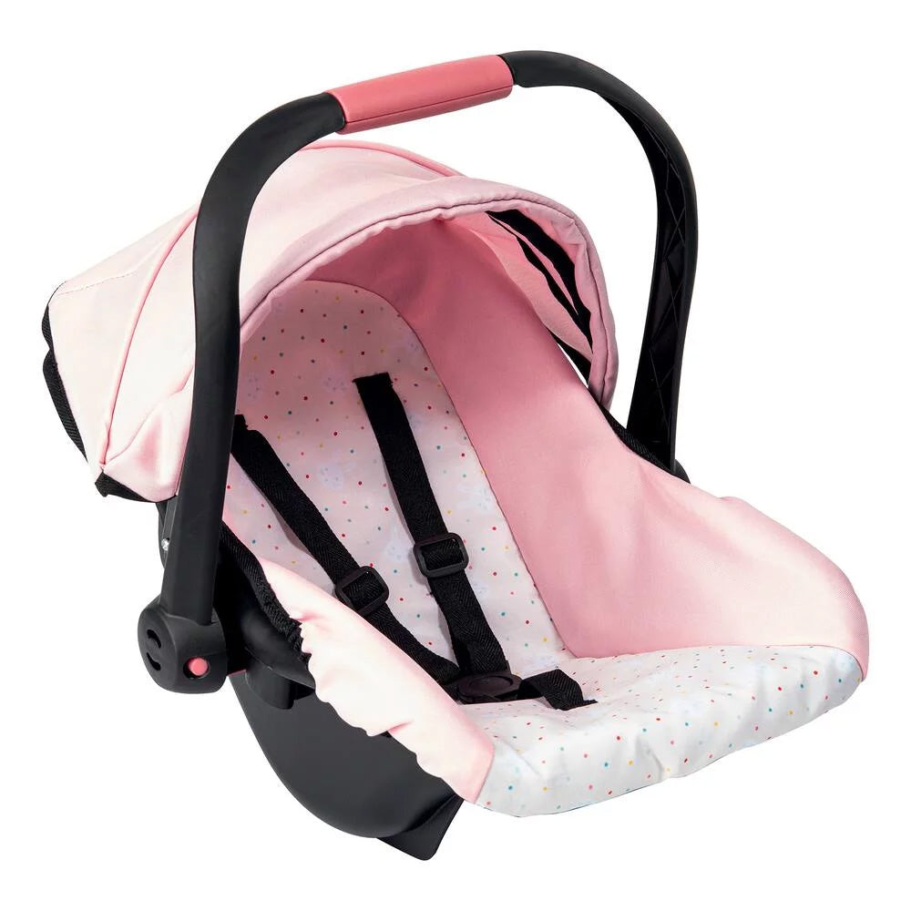 Siège auto coque ou cosy au design modern. Pour poupée jusqu'à 46 cm (non fournie). Avec canopy (capote de poussette) protégeant la poupée du soleil ou du vent. La capote est amovible et ajustable. Avec ceinture de sécurité intégrée. Poignée ergonomique permettant un transport facile et confortable. Poignée ajustable de 14 à 35 cm. Léger et facile à porter. Matières du siège auto : en PP et tissu en polyester. Poids du siège auto : 0.75 kg. Pas besoin d'assemblage. Siège auto compatible avec le landau de ville (12023257 vendu séparément) : il peut être monté sur le landau.