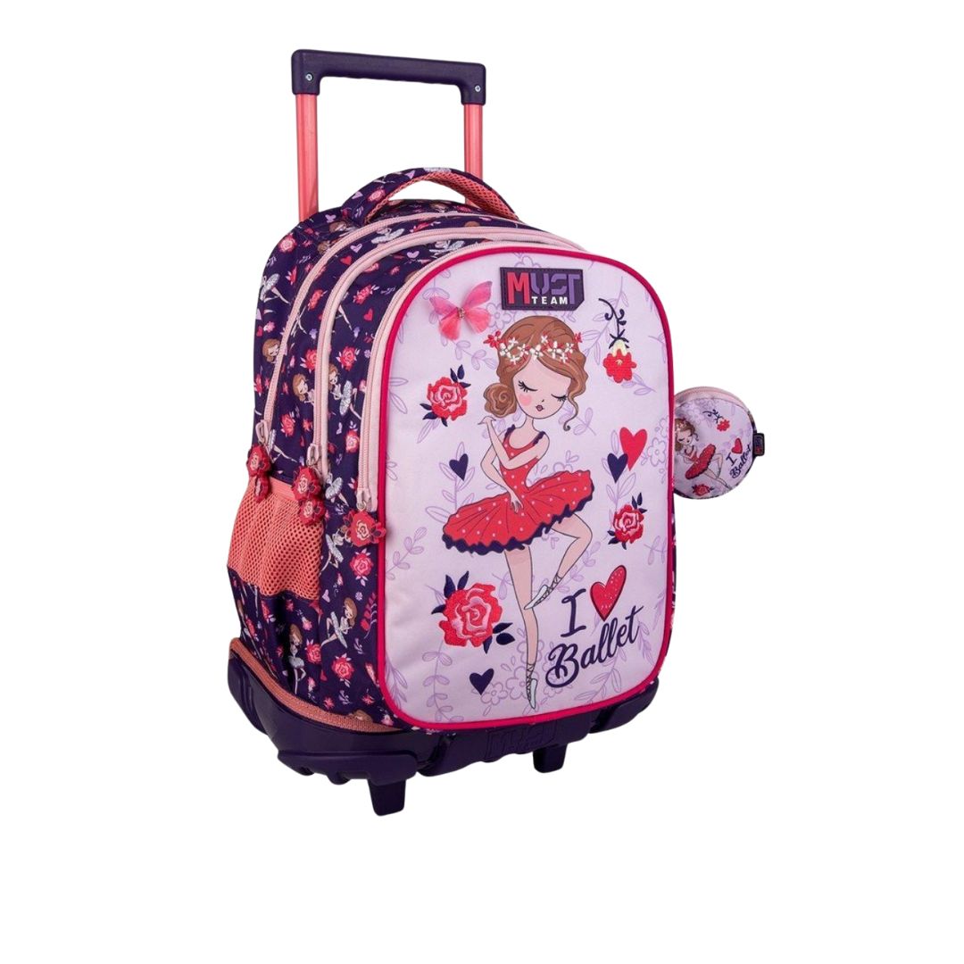 The Must Team I Love Ballet Primary School Trolley School Bag combines functionality and style, featuring an impressive ballerina design with embroidered flowers. This practical and durable school bag is ergonomically designed for safe and comfortable transportation of all necessary school supplies, making it ideal for young students.