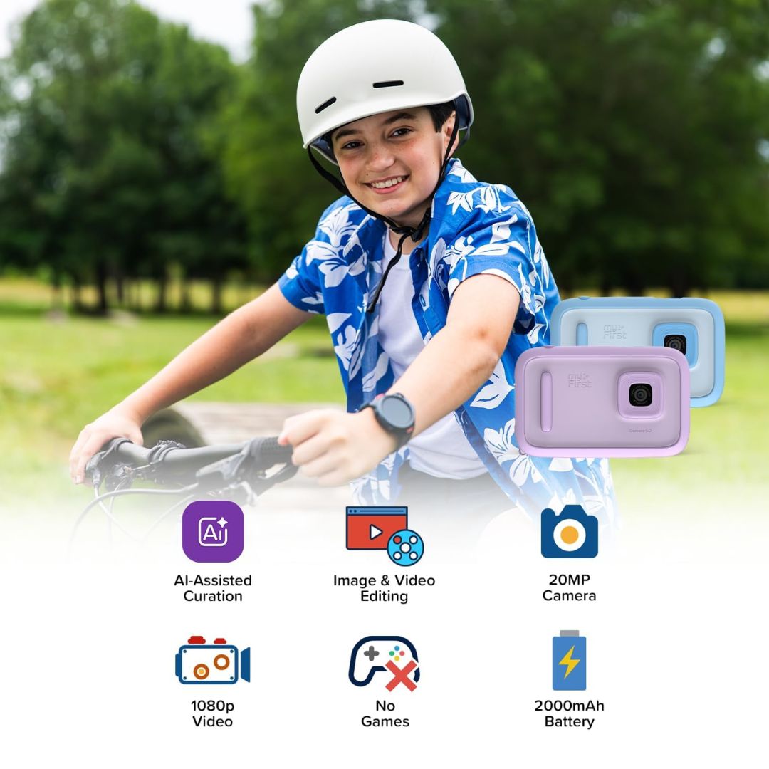 The MyFirst Camera 50 is a Blue digital camera specifically designed for children, combining functionality and creativity to inspire young storytellers. With its user-friendly features, this camera allows kids to capture high-quality photos and videos while exploring their artistic abilities in a safe and guided environment.