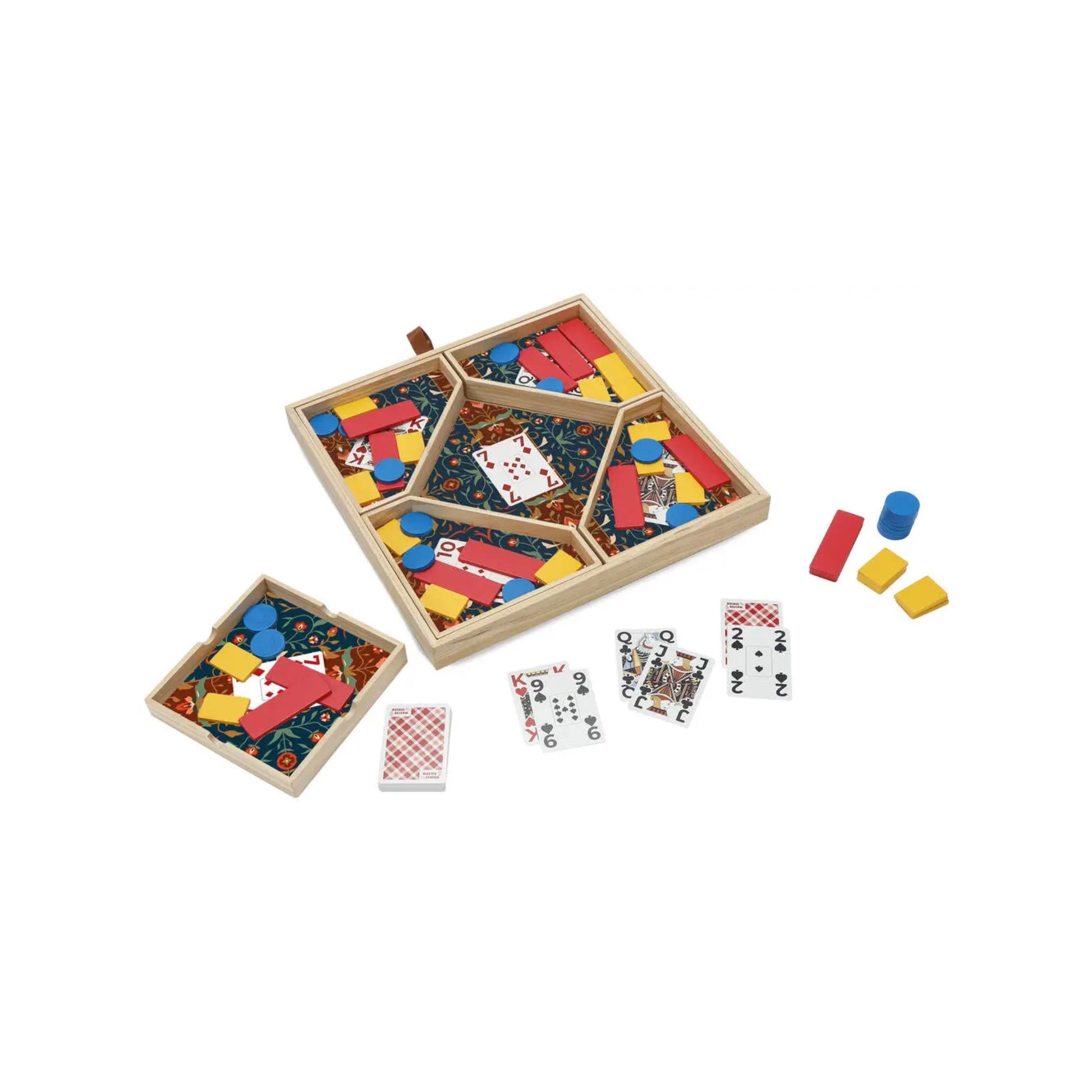 This premium Le Nain Jaune (The Yellow Dwarf) set is crafted from certified wood and features a large raised game board that organizes the gameplay area while collecting tokens during each round. The elegant wooden components and storage bags make it both durable and practical for repeated family game nights.