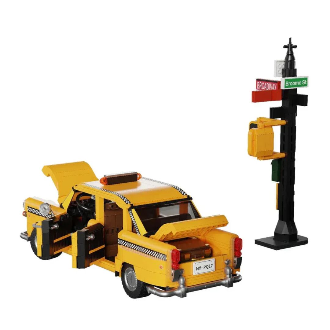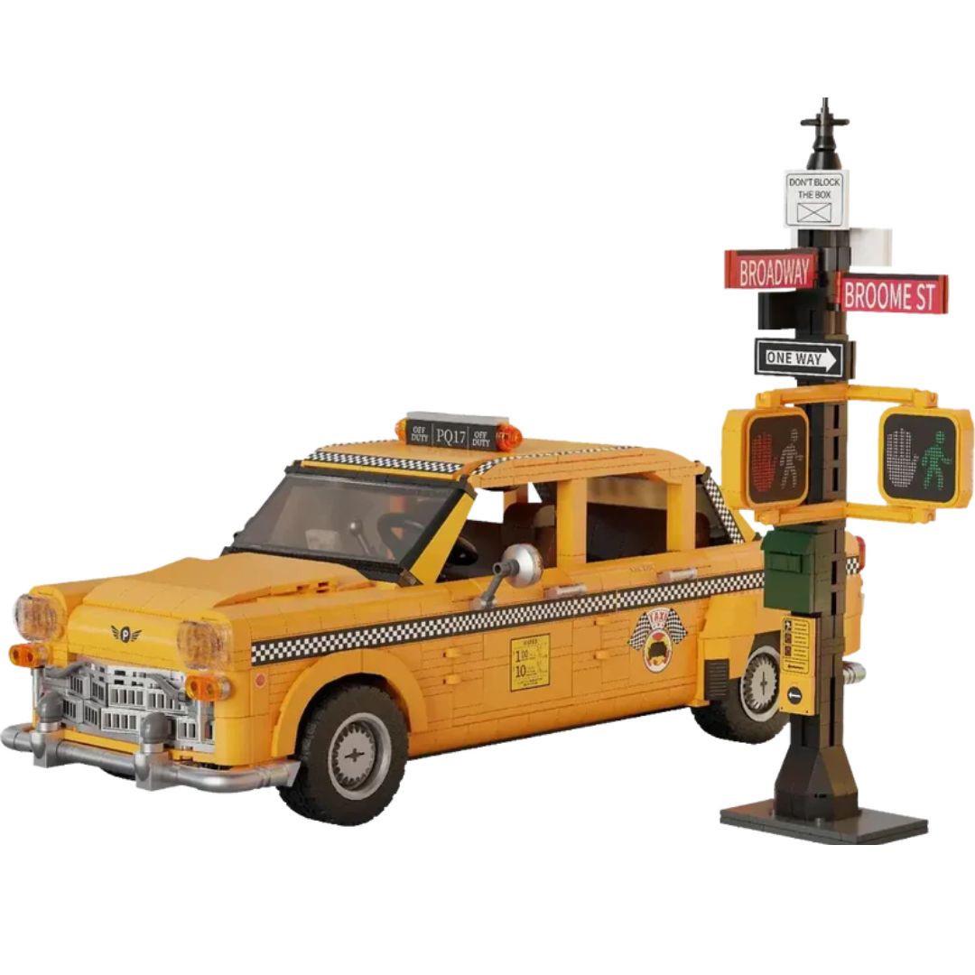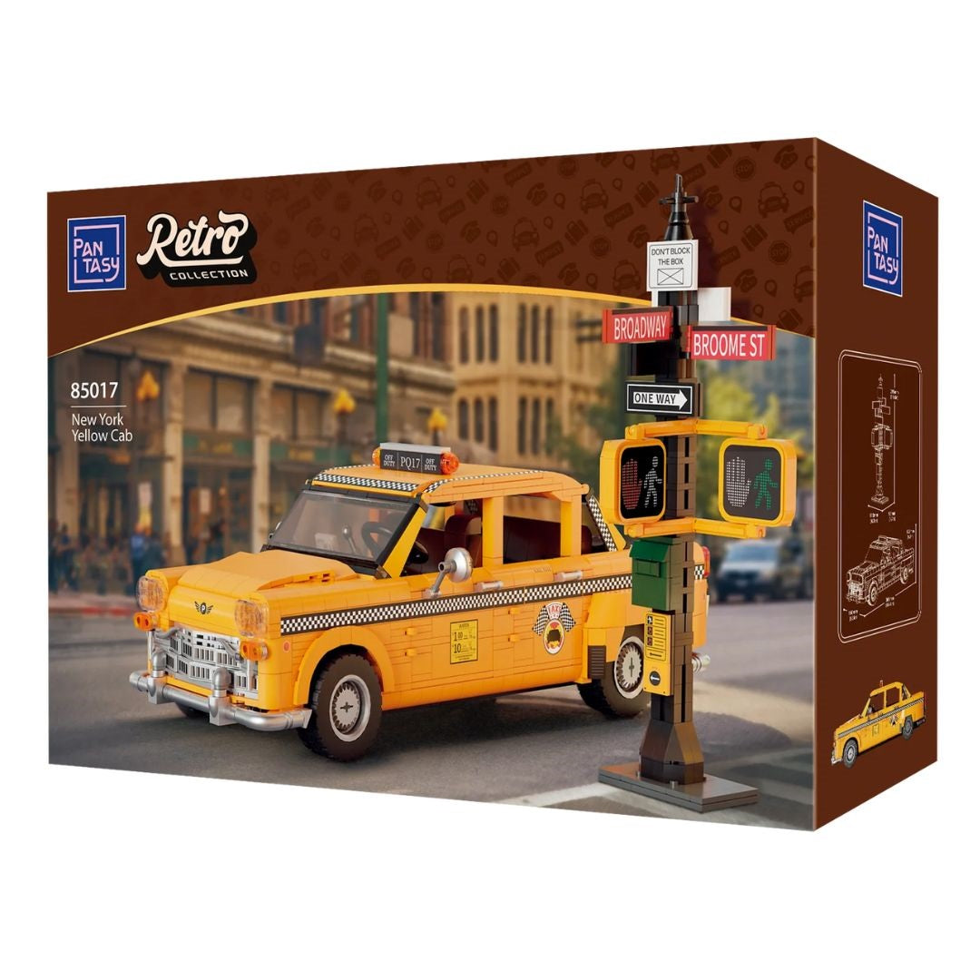 The Pantasy Classic 1980s New York Taxi Building Kit captures the essence of retro New York City with an authentic yellow taxi and vivid street elements. This nostalgic set features intricate details such as iconic roof lights, hood emblems, and the classic checkerboard pattern. It includes a realistic traffic light and road signs, creating a lively scene reminiscent of the 1980s.