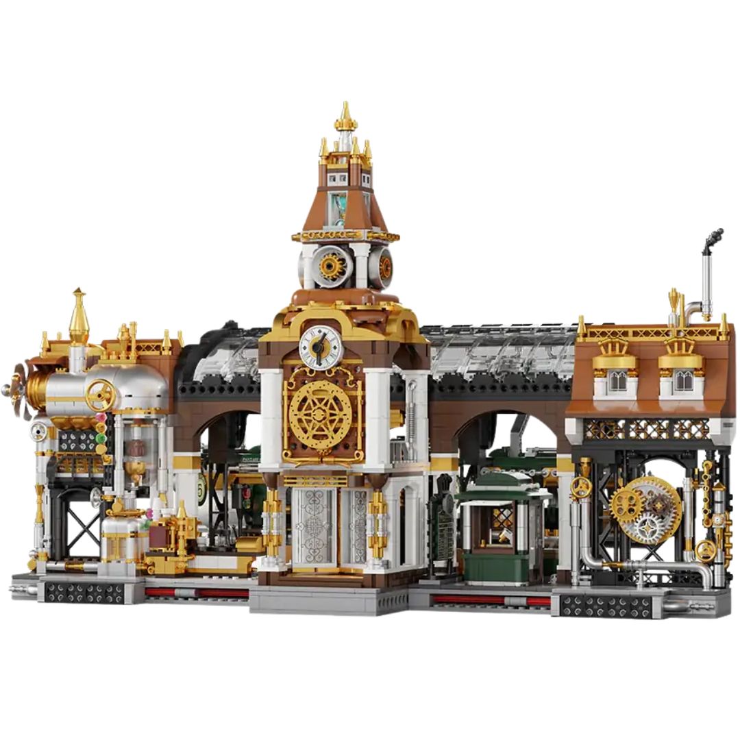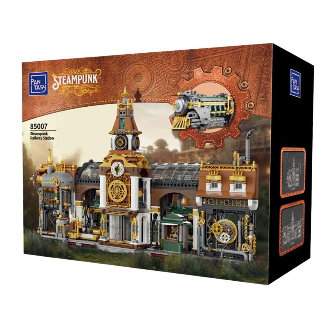The Pantasy Steampunk Series-Railway Station is a stunning architectural building set that captures the charm of the Victorian steampunk era. This set features intricate designs, a buildable train, and a variety of detailed elements that make it a joy to assemble. The absence of stickers, replaced with high-quality prints, enhances its aesthetic appeal, particularly with metallic gold accents.