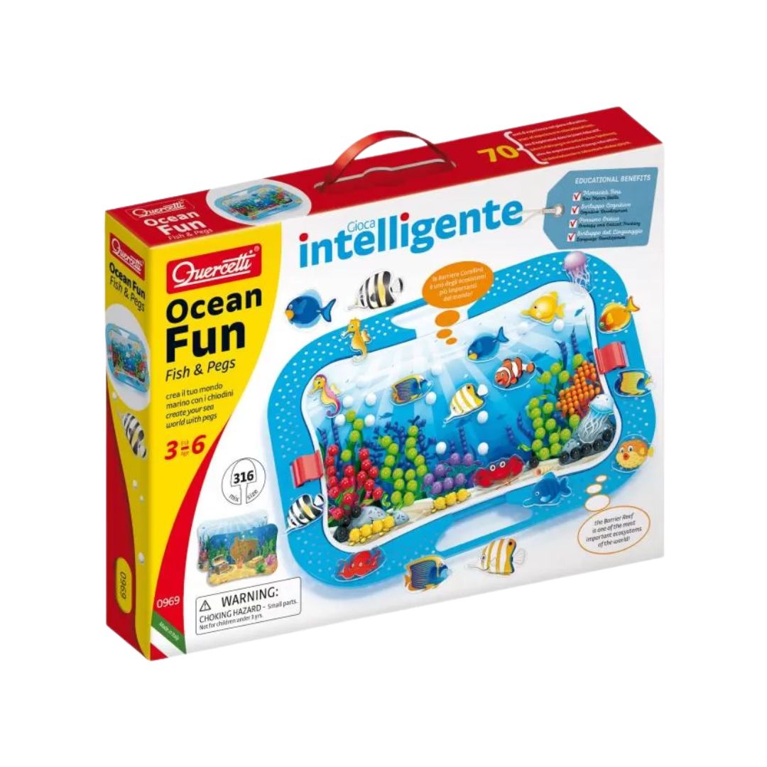 The Quercetti Poissons et Chevilles Océaniques is a colorful toy that allows children to create underwater scenes using various pins and marine-themed molds.