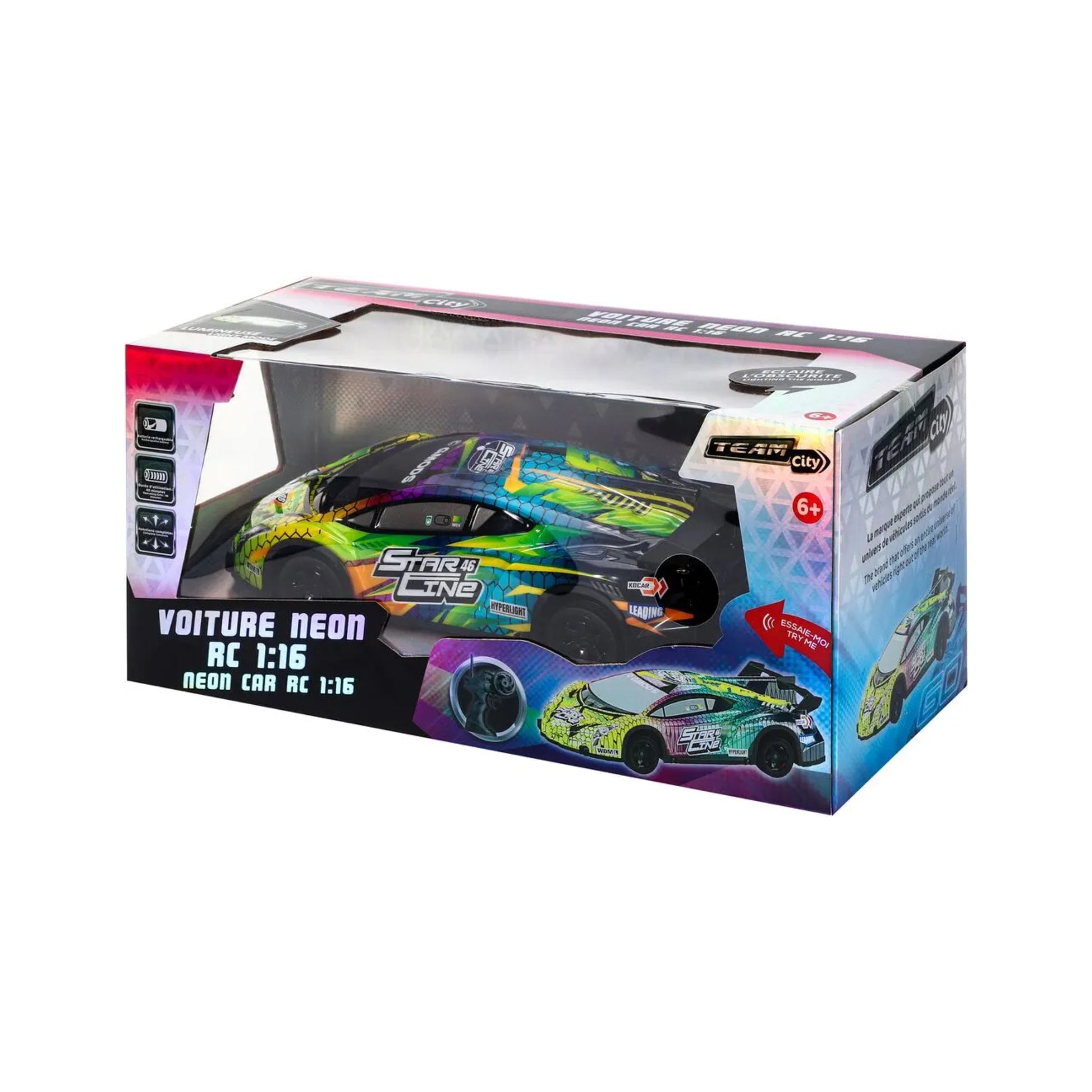 This radio-controlled car in 1:16 scale is built for high-speed action and extended playtime. Powered by advanced 2.4G technology, it delivers stable control with full driving functions including forward, reverse, and smooth left and right turns. Integrated front lights illuminate the darkness, enhancing visibility and play value, while the pistol-shaped remote control provides precise and comfortable handling.