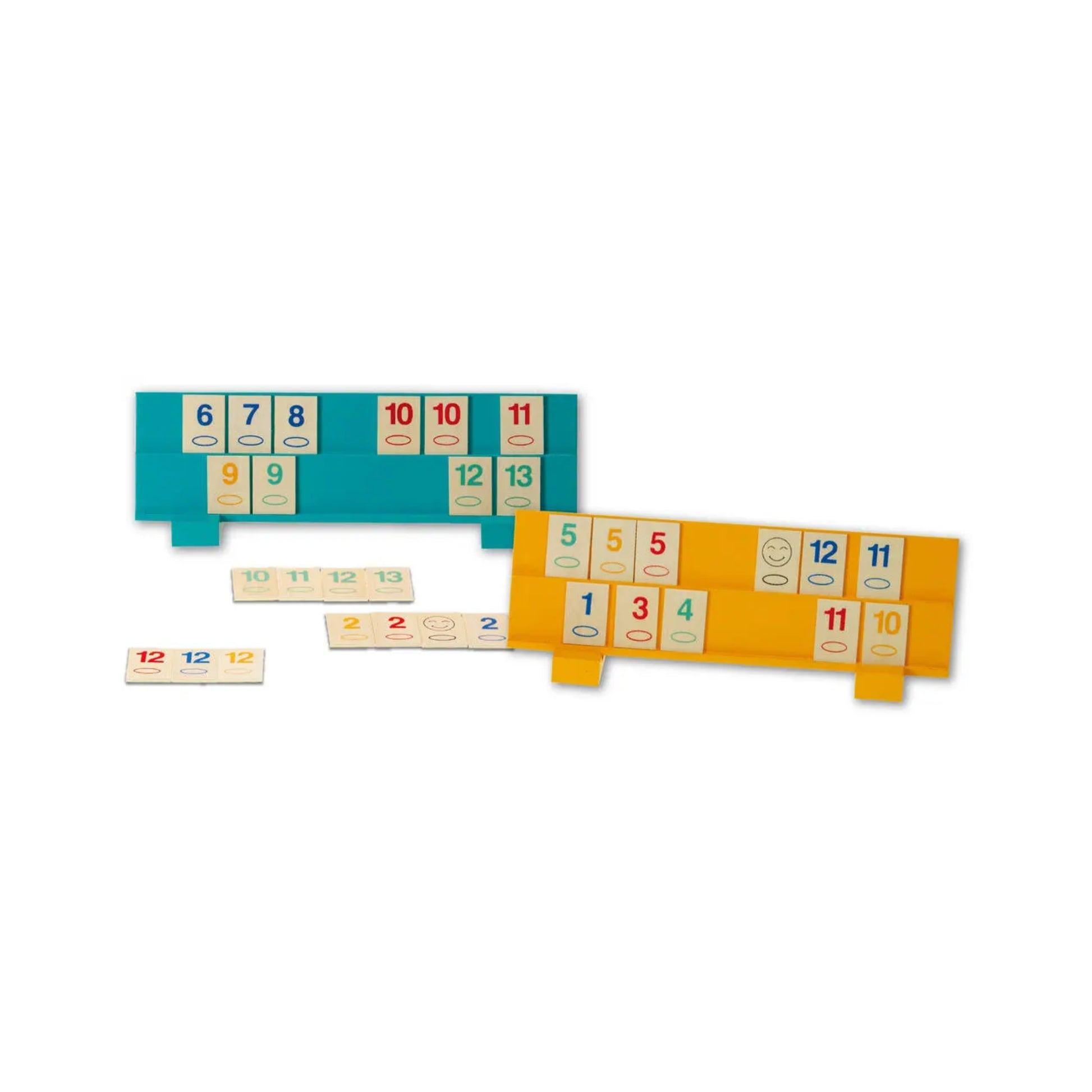 In this Rummy tile game, the objective is simple: be the first player to get rid of all your tiles by forming valid number combinations and sequences. The player who manages their tiles strategically and places the most combinations wins the game.
