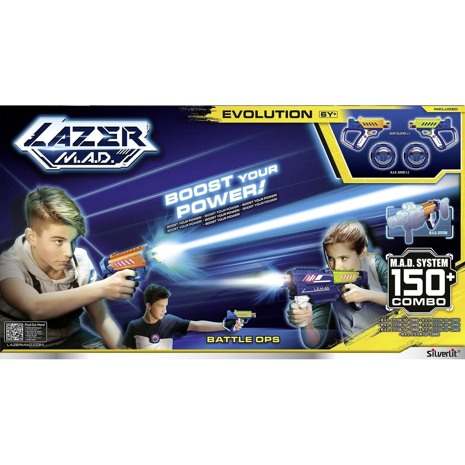 The Silverlit First Ops offers an engaging laser tag experience with two pistols and two laser targets included in the set. Players can attach the targets to their chests and use the pistols to aim and "tag" opponents, complete with real light and sound effects. Additional extension sets are available to increase the laser beam range up to 50 meters. Both the guns and targets require 3 x AAA batteries each (not included), and please note that a vest is not included. This game is suitable for children aged 6 and older, providing an action-packed and competitive laser tag experience.
