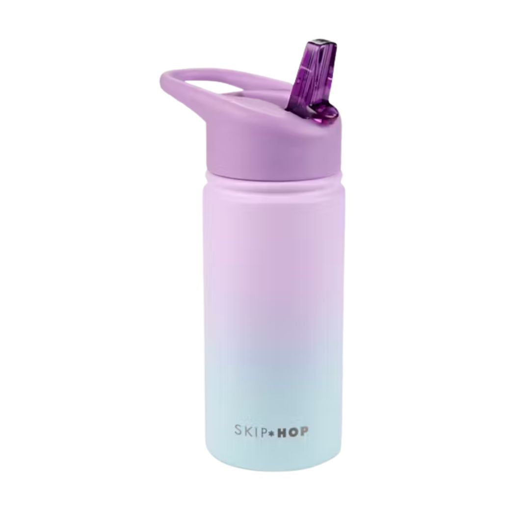 The Skip Hop Insulated Stainless Steel Kids Water Bottle with Straw - Wander Ombré Purple is ideal for active children, helping them stay hydrated throughout their activities.