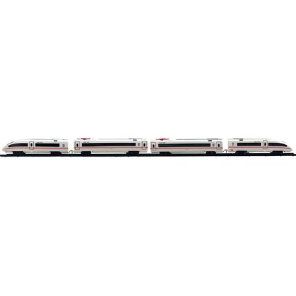 Tout savoir sur le produit Super Train Avec Circuit Modulable L'ensemble comprend 2 locomotives incluses dont une avec fonction, 2 wagons, 4 arbres, 8 panneaux de signalisation, 1 maison et 1 station-essence. Piste composée de 31 pièces. Il fonctionne à piles.