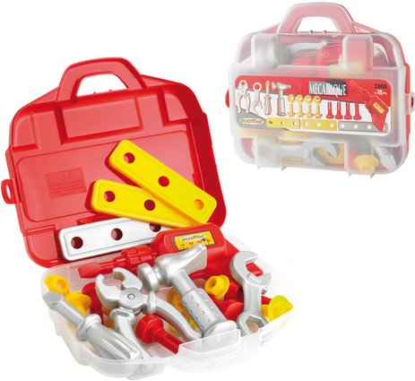 A partially transparent case to store the 20 essential accessories for a good mechanic: drill, pliers, screwdriver, nuts…