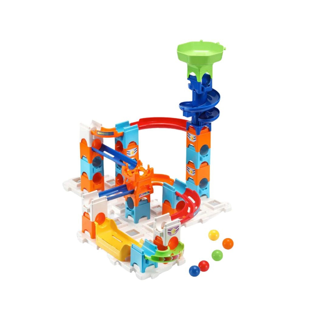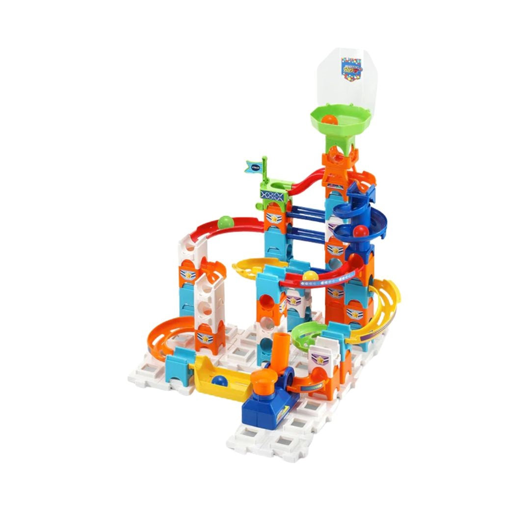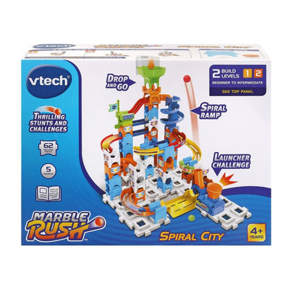 The Vtech Marble Rush Spiral City Circuit is a colorful play set designed to create an exciting marble run city. It includes 62 building pieces and 5 marbles, allowing for endless creativity and fun.