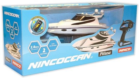 This medium-sized and highly detailed radiocommanded yacht is perfect for water enthusiasts. It operates on a 2.4 GHz frequency, ensuring smooth control. Full Functions: Move forward, reverse, turn left, and turn right. Dual Motors: Equipped with two motors for efficient performance. Multiplayer: Up to 10 players can operate their yachts simultaneously. Speed: It can reach a maximum speed of 12.5 km/h. Range: The remote control has a maximum range of 20 meters. Usage Time: Approximately 15 minutes per charge. Charging Time: Maximum of 150 minutes. Battery: Rechargeable 3.7V Li-Ion 1200 mAh battery included. USB Cable: Charging cable included. Remote Control Batteries: Requires 2 LR6 batteries (not included). Freshwater Use Only: Suitable for operation on freshwater.